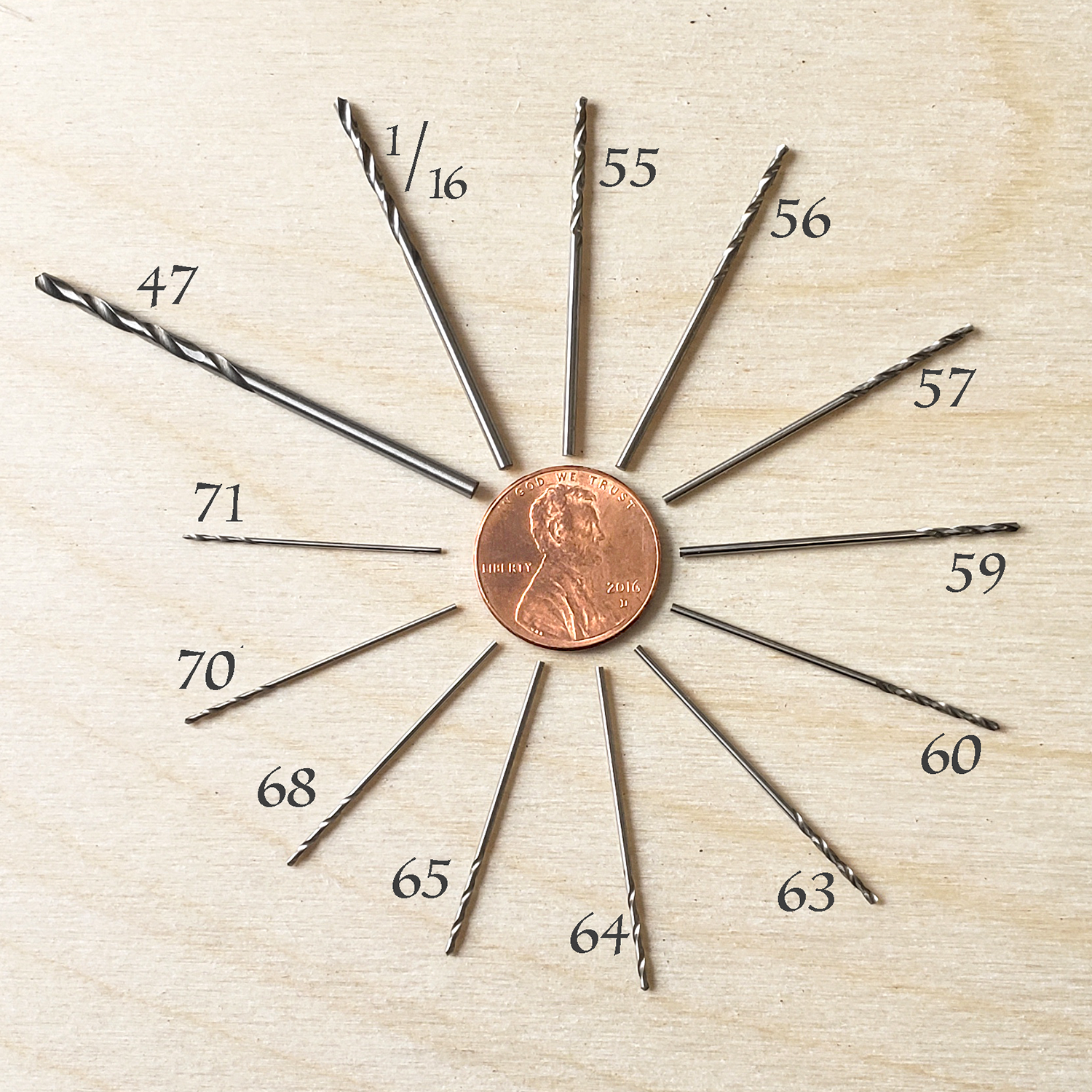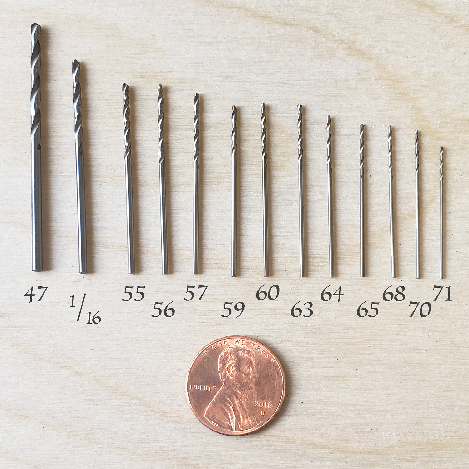 Industrial-quality, high-speed precision drill bits. For your scroll saw needs—larger bits for normal cutouts, smaller bits for "hidden holes," veining, and intricate cutting.
